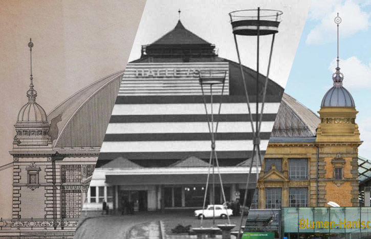 Im Rahmen von mehrjährigen Sanierungs- und Umbauarbeiten im Bereich der Kuppelhalle wurde 1986 die Vorhangfassade entfernt und die historische Nordfassade kam wieder zum Vorschein. Der Wiederaufbau der beiden flankierenden Rundtürme stand für die Folgejahre auf der Agenda.